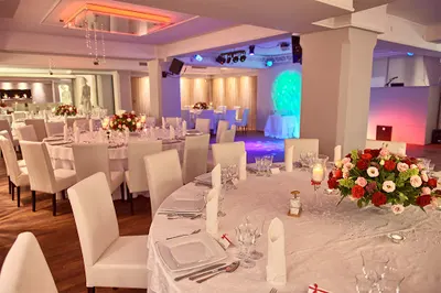 - Elegancki wystrój sali z nastrojowym oświetleniem i dekoracjami
